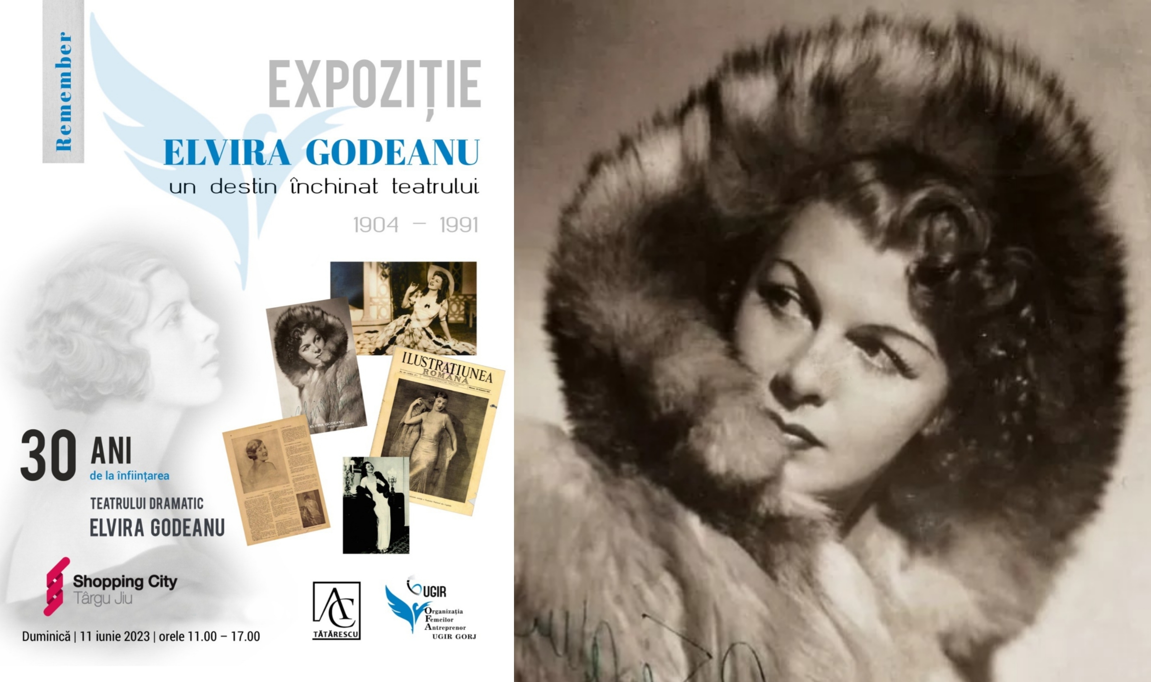 Organizația Femeilor Antreprenor – OFA UGIR Gorj împreună cu Asociația culturală Tătărescu vă invită duminică, 11 iunie 2023, la Shopping City Târgu Jiu, pentru a vizita Expoziția „Elvira Godeanu – un destin închinat teatrului”, cu ocazia împlinirii a 30 de ani de la înființarea teatrului care poartă numele celebrei actrițe născută la Târgu Jiu.