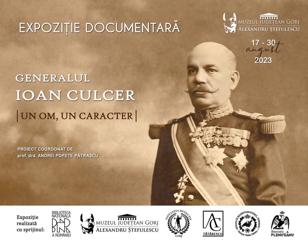 Deschiderea expoziției dedicată generalului Ioan Culcer va avea loc joi, 17 august 2023, de la ora 17.00, la Muzeul Județean de Istorie „Alexandru Ștefulescu”, fiind un eveniment care merită atenția iubitorilor de istorie, dar și a tuturor celor interesați să descopere povestea celui mai important general gorjean, născut la Târgu Jiu în urmă cu 170 de ani.
