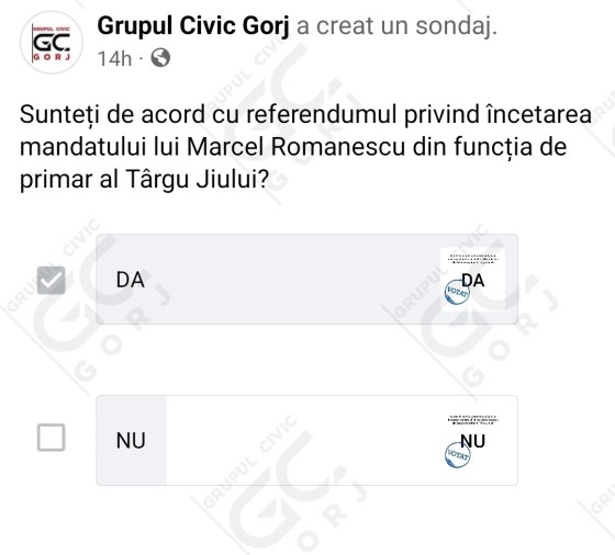 Sondaj de opinie. 80,62% au spus DA pentru Referendum la Târgu Jiu